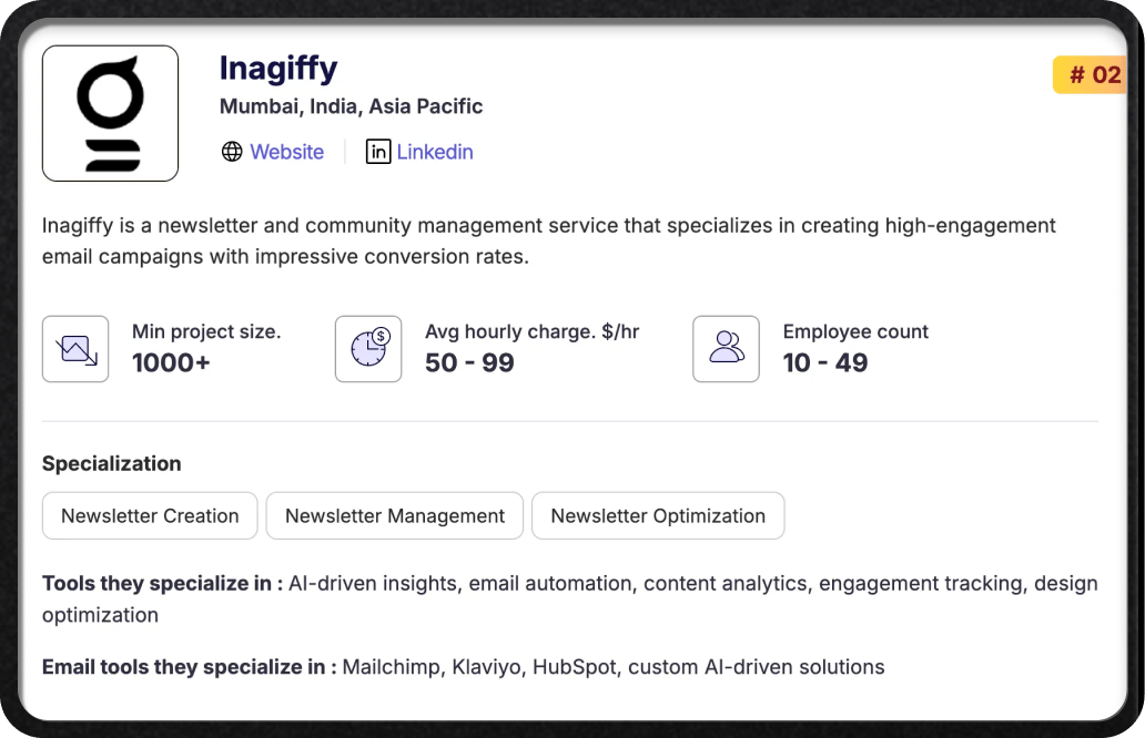 We were ranked as the #2 email design agency by mailmodo (one of my fav esps)
