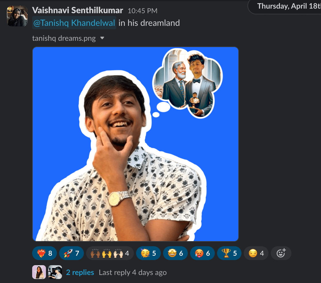 Meet Tanishq, whose go-to phrase is “Bhai Saab Jiii” is our design head and also the perfect person to make a “meme” on.